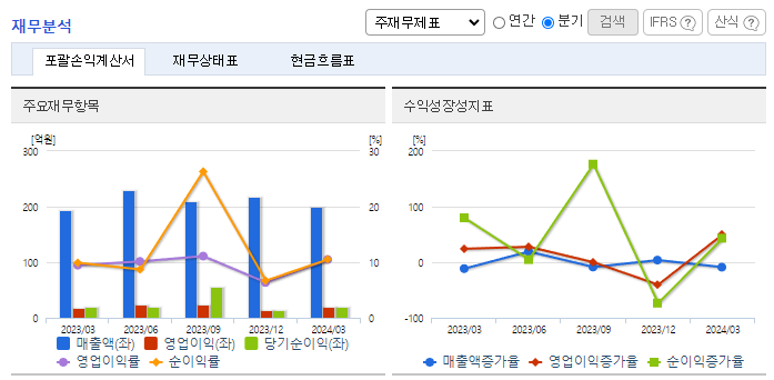 -2023년 12월 전년동기 대비 연결기준 매출액은 2.2% 증가, 영업이익은 53.9% 증가, 당기순이익은 398.5% 증가. 매출 증가 및 원가절감에 따라 영업이익이 증가했으며, 보험수익 인식에 따른 영업 외 수익도 동시에 증가함. 포스코, 현대자동차, 세아베스틸, 현대중공업 등의 주요 고객사와 각종 연마지석의 납품 및 단가계약을 통해 꾸준한 거래를 유지하고 있음.