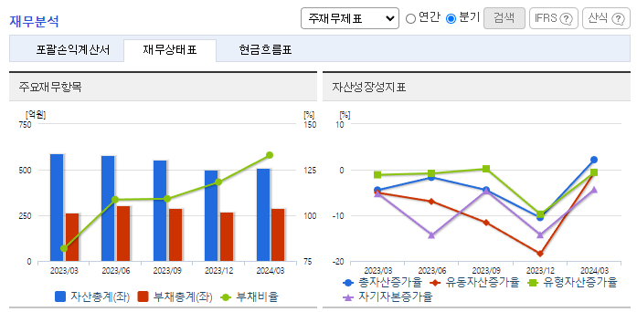 -2024년 3월 전년동기 대비 연결기준 매출액은 7.3% 증가, 영업손실은 48.7% 감소, 당기순손실은 49.8% 감소. (주)엠비에이치홀딩스와 문혁기 前대표의 지분을 매각하는 주식양수도 계약을 체결하여 경영권 매각 작업을 마무리하였으며 본 계약을 통해 자동차 수리·부품 유통업체인 더블에이치엠이 대주주가 됨. 낮은 가동률 문제로 인하여 적자가 지속되고 있음.