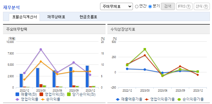 -2023년 9월 전년동기 대비 연결기준 매출액은 208.2% 증가, 영업이익 흑자전환, 당기순이익 흑자전환. 엔데믹 여파로 2023년 3분기 항공여객은 전년 동기 년대 비 94% 증가하여 매출이 급증하였음. 이에 영업이익도 크게 증가. 2023년 상반기 항공여객이 전년 동기 대비 105% 증가하는 등 환경 개선 중. 동사는 LCC 최초 화물기 도입, 국제선 부정기 운항 등을 지속적으로 개척하며 수익성 개선을 위해 선제적으로 노력 중.