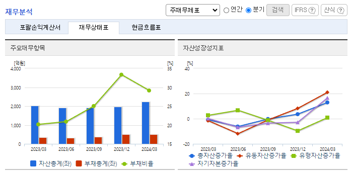 -2024년 3월 전년동기 대비 연결기준 매출액은 24.4% 증가, 영업손실은 359.8% 증가, 당기순이익 적자전환. 2023년 8월 온라인 쇼핑몰 "라프리마" 정식 오픈하여 직접판매 방식의 매출을 확대하려고 함. 이를 기반으로 앞으로의 브랜드 사업 전개에 있어 밸류체인을 구축해 나갈 예정임. 포니를 국내에 도입하여 자율주행 사업을 시작할 예정이라고 밝힘. 자율주행사업에 집중할 예정임.