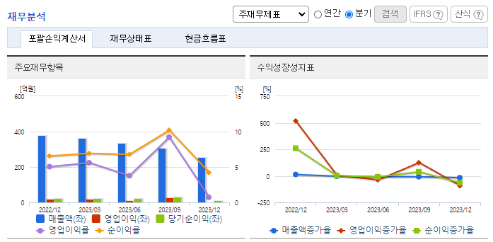 -2023년 12월 전년동기 대비 별도기준 매출액은 3.7% 증가, 영업이익은 1148.8% 증가, 당기순이익은 49.2% 증가. 동사의 경영진은 소비패턴의 변화와 소재 다양화에 따른 수요감소에 선제적으로 대응하고자 패션사업 부분을 과감하게 축소했음. 동사는 사업 구조조정 후 추가로 확보한 역량을 향후 지속 가능성이 높은 자동차 사업 부분에 재배치하여 시장 확대에 노력하고 있음.