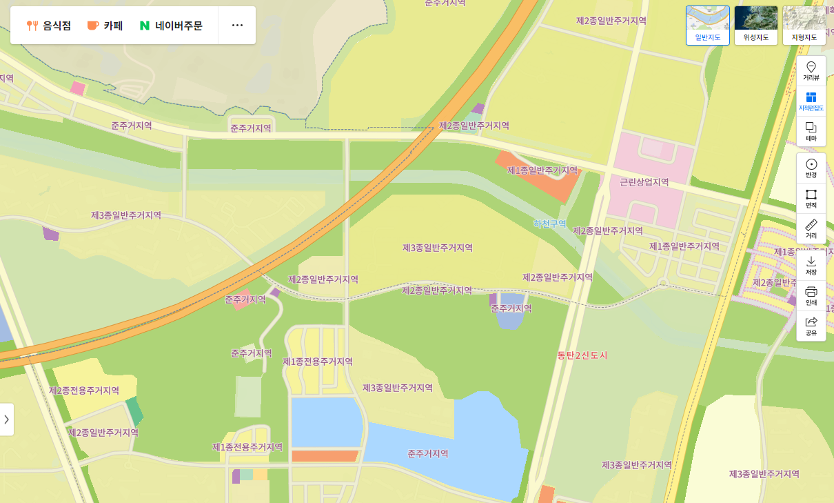 네이버 지도에 있는 지적편집도를 이용하면 주거지역이 어떻게 분류되어 있는지 확인할 수 있다.