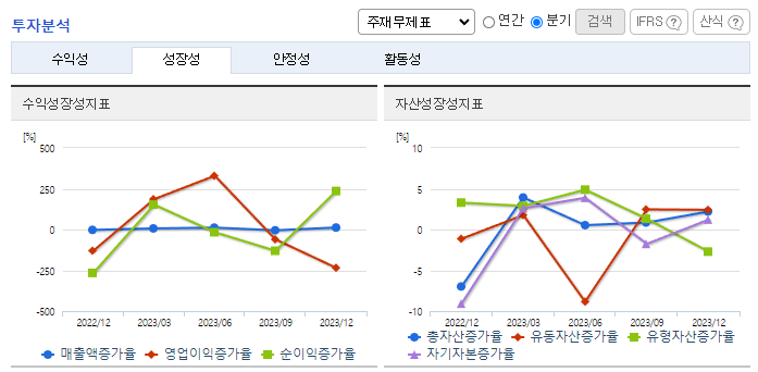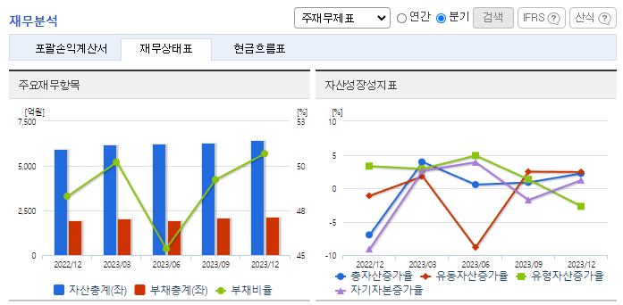 -2023년 12월 전년동기 대비 연결기준 매출액은 15.6% 증가, 영업이익은 32.8% 감소, 당기순이익은 47.7% 증가. 연결실체의 주요 사업부문인 플라스틱 제품 제조(합성수지제조), 자동차부품제조 중 플라스틱 제품제조는 매출액 변동은 변동이 크지 않고 자동차부품제조가 전기대비 44.1% 증가하였음. 동사의 수출은 현재 중국, 중동, 남미가 주요 시장임.