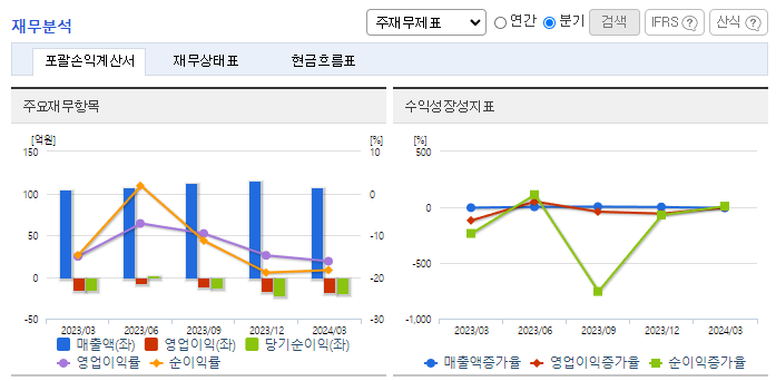 -2024년 1분기 별도기준 매출액은 전년동기 대비 3.3% 증가, 영업손실은 11.3% 증가, 당기순손실은 28.4% 증가. E-Pass 시스템을 도입하여 차량에서 발권할 수 있도록 하였으며 도착안내시스템을 구축하여 목적지 예상 도착시간을 확인할 수 있도록 하고 있음. 프리미엄버스 도입으로 타 운송수단과의 경쟁에서 우위를 확보할 수 있도록 서비스 개선 노력을 꾸준히 펼쳐가고 있음.