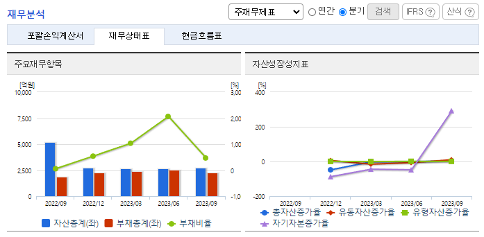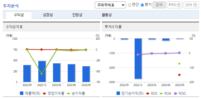 -2023년 9월 전년동기 대비 연결기준 매출액은 11.1% 증가, 영업손실은 6557.8% 증가, 당기순손실은 139.9% 증가. 엘에스엘씨엔씨를 2023년 05월 04일 흡수합병을 통해 자회사로 편입하여 바이오생명공학 사업을 지속 진행하게 되었음. 동사는 2023년 3분기 3,976 백만 원이 주식보상비용으로 쓰이고 경상개발비 등이 전년동기대비 증가하면서 영업손실 폭이 악화되었음.
