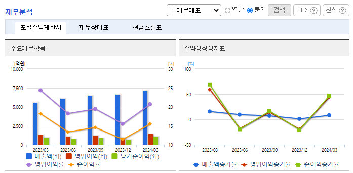 -2024년 3월 전년동기 대비 별도기준 매출액은 28.1% 증가, 영업이익은 8.8% 증가, 당기순이익은 9.2% 증가. 수신 증가와 저원가성예금 증가로 예대율 하락이 일부 발생하여 NIM이 전년동기대비 소폭 하락함. 비이자이익 부문에서는 투자 및 매출 비교 서비스 확대로 플랫폼 수익 및 수수료가 증가함. 대환대출 부문에 점유율 확대가 순조롭게 이루어지고 있으며, 플랫폼 비즈니스의 영향력 강화와 플랫폼 수익이 기대됨.