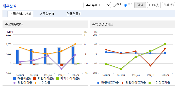 -2024년 3월 전년동기 대비 연결기준 매출액은 24.7% 증가, 영업손실은 25.4% 감소, 당기순이익은 29.3% 감소. 2024년 4월부터 데이마켓 런칭을 통해 해외주식 투자자들의 가장 큰 제약 요소인 거래시간의 불편함을 해소하여 빠르게 변화하는 해외주식 시장에 유연히 대처할 수 있도록 서비스를 출시하였음. 2023년 7월 보험상품 비교추천 서비스 사업자로 지정받아, 2024년 1월 자동차보험 비교 서비스를 출시하였음.