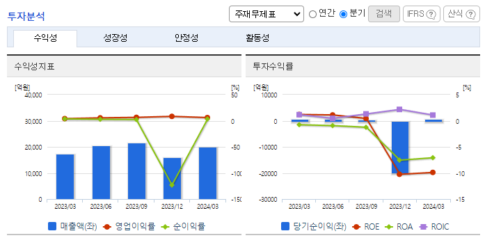 -2024년 3월 전년동기 대비 연결기준 매출액은 22.5% 증가, 영업이익은 92.2% 증가, 당기순이익은 232.1% 증가. 자회사인 카카오모빌리티와 카카오페이의 매출이 가파르게 증가한 것이 영업이익 증가에 긍정적인 영향을 미쳤고, 중국 이커머스 플랫폼이 한국에 본격 진출하면서 광고사업이 호황을 띤 것도 호재로 작용하였음. 톡비즈는 동사 전체 매출에서 차지하는 비중이 상당히 큰데, 최근 성장세가 둔화되고 있음.