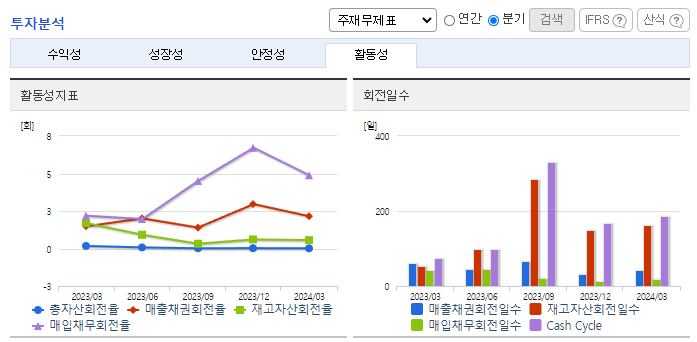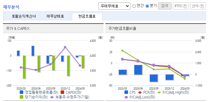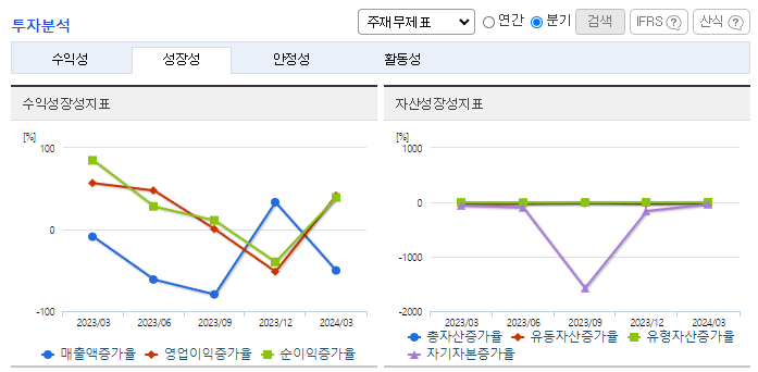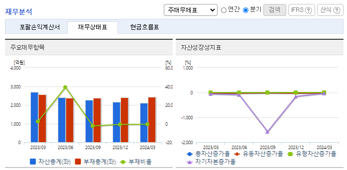 -2024년 3월 전년동기 대비 별도기준 매출액은 94.7% 감소, 영업손실은 54.1% 감소, 당기순손실은 45.8% 감소. 카프로락탐 판가가 원가 이하 수준을 계속 유지하고 있어 가동율을 최저 수준으로 유지하고 있음. 이의 영향으로 영업손실 폭은 줄어들었으나 여전히 대규모 적자 상황임. 암모니아, 프로판 등 원재료가격 안정과 글로벌 수요 회복이 절대적으로 필요한 시점이나 단기간 내 개선되기는 어려울 전망.