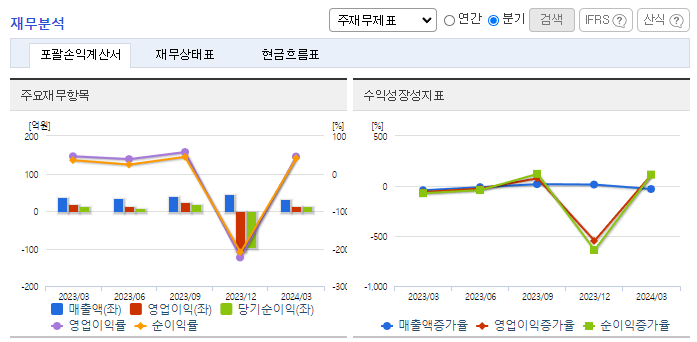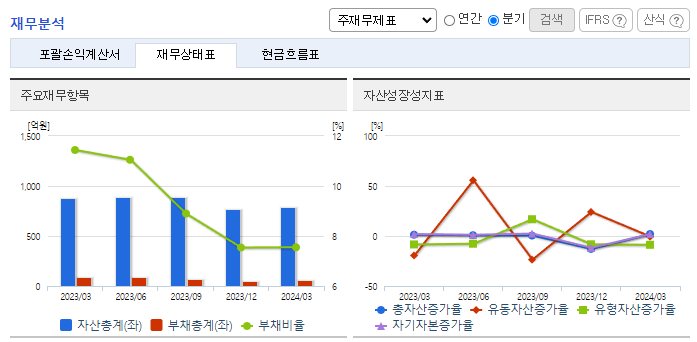 -2024년 3월 전년동기 대비 별도기준, 영업이익은 17.1% 감소, 당기순이익은 3.6% 감소. 2024년 3월 말 기준 동사가 운영 중인 펀드는 총 17개로 운영자산(AUM) 기준 9,269억 원을 기록하고 있음. 동사는 사모투자펀드(PEF)로 사업 영역을 확대하였으며, 2024년 5월 대치동 입시학원 세정학원에 150억 원을 투자하여 경영권을 인수하고 최대주주가 되었음.