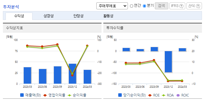 -2024년 3월 전년동기 대비 별도기준, 영업이익은 17.1% 감소, 당기순이익은 3.6% 감소. 2024년 3월 말 기준 동사가 운영 중인 펀드는 총 17개로 운영자산(AUM) 기준 9,269억 원을 기록하고 있음. 동사는 사모투자펀드(PEF)로 사업 영역을 확대하였으며, 2024년 5월 대치동 입시학원 세정학원에 150억 원을 투자하여 경영권을 인수하고 최대주주가 되었음.
