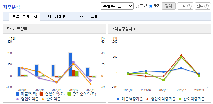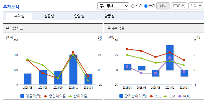 -2024년 3월 전년동기 대비 연결기준 매출액은 3.3% 감소, 영업이익 적자전환, 당기순이익 적자전환. 유지보수(용역) 사업 부문이 13.15% 증가했지만, SecureDB 사업 부문이 19.23% 감소하면서 전체 외형 성장에 악영향을 줌. 스마트시티의 핵심 구성요소인 스마트빌딩에 대한 사이버위협관리 및 블록체인기반 기기신뢰관리기술 개발의 국가 R&D 수행기업으로 우선선정됨.