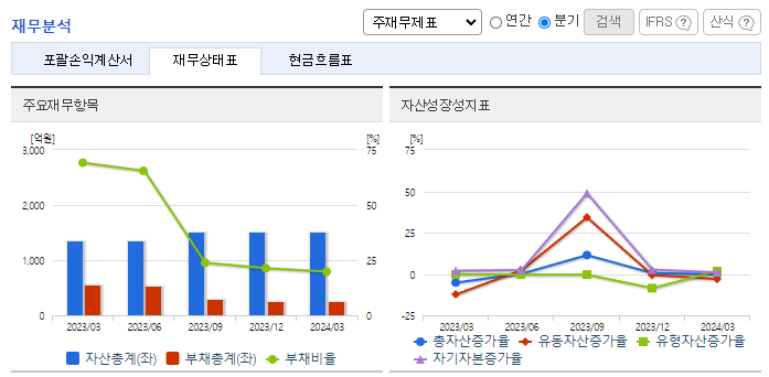 -2024년 3월 전년동기 대비 연결기준 매출액은 28.8% 감소, 영업이익은 49.4% 감소, 당기순이익은 14% 감소. 자동차부품소재부문에선 기존 영위하던 사업영역에 신규로 Hook&Loop 제품을 라인업에 추가함에 따라 다양한 제품 라인업을 구축함. 플루오린코리아의 주요 생산제품인 F2가스는 반도체 미세공정 고도화가 진행됨에 따라 도입 범위가 점차 확대되고 있어 향후 시장 규모 확대가 예상됨.