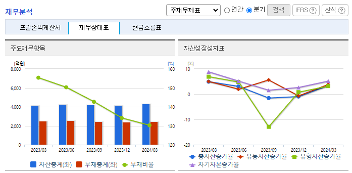 -2024년 3월 전년동기 대비 연결기준 매출액은 12.5% 증가, 영업이익은 31.2% 감소, 당기순이익은 15.8% 감소. 동사는 완성차 판매 호조에 따른 탑라인 성장, HEV 물량 확대에 따른 마진율을 개선함. 2022년 출시한 폭스바겐 전기차 전용 MEB 플랫폼 차량 ID BUZZ 의장부품 공급업체로 선정되는 등 코리아에프티는 유럽 자동차 부품 공급 파트너로 자리 잡고 있음.