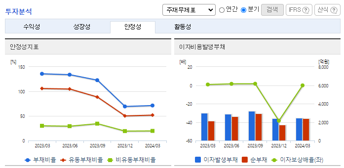 -2024년 3월 전년동기 대비 연결기준 매출액은 31.8% 감소, 영업이익 적자전환, 당기순손실은 21.3% 증가. 신소재부문을 포함한 대부분의 사업부문에서 비교적 큰 폭의 매출 하락세를 기록하였으며, 매출 감소에 따른 원가 및 비용부담 확대로 수익성은 크게 하락한 상황. 루타일형, 장섬유용 제품 및 상품판매 등 신제품 개발에도 박차를 가하고 있는 점 긍정적으로 평가.