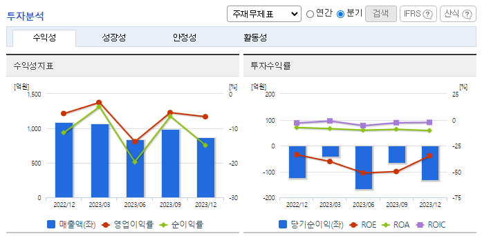 -2023년 12월 전년동기 대비 연결기준 매출액은 17.9% 감소, 영업손실은 12.9% 증가, 당기순손실은 3.2% 감소. 반도체 사업부문 글로벌 신규 고객 수주 증가 효과가 있었으나 주력인 Lens 사업 부문은 글로벌 경기침체의 영향으로 매출이 감소하여 대규모 손실이 지속됨. 기술, 가격 경쟁력 제고 및 제조기반 경쟁력 우위 확보를 위해 지속적으로 노력하고 있으며, 신개념 제품의 개발에 대한 노력과 판매 물량 확보를 목표함.