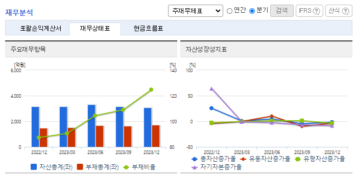 -2023년 9월 전년동기 대비 연결기준 매출액은 25.5% 감소, 영업이익 적자전환, 당기순이익 적자전환. 시장의 영향을 크게 받는 산업은 아니나 정세 불안으로 매출이 감소하고 비용은 증가하여 수익성이 계속적으로 하락하고 있음. 일본 제네릭 및 오리지널 업체와의 네트워크를 확보하고 있어 향후 수출선점효과를 누릴 것으로 전망하고 있으며 2023년 3월 28일 이사회 결의를 통해 기능소재 사업구분에 포함된 WS사업의 중단을 결정하였음.