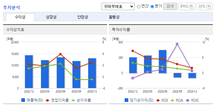 -2023년 9월 전년동기 대비 연결기준 매출액은 4.2% 감소, 영업이익은 42.7% 감소, 당기순이익은 66.4% 감소. 다양한 사업영역을 영위하고 있다 보니 경기변화에 대해 유동적으로 대처하기가 용이하나 회사 사업구조가 복잡해 전망을 추정하기에는 어려움이 있음. 화학소재군 건자재 사업 철수로 인하여, 2023년 1분기부터 해당 제품이 시장점유율 산정에서 제외됨.
