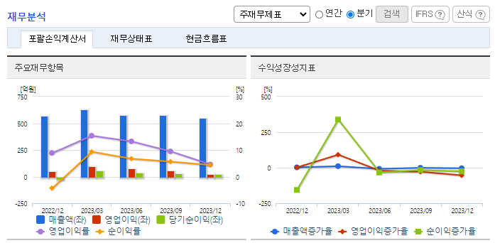 -2023년 12월 전년동기 대비 연결기준 매출액은 2.6% 증가, 영업이익은 1.7% 감소, 당기순이익은 204.1% 증가. 전년동기 대비 매출이 소폭 상승했으나 원가율 악화와 판관비, 인건비 등 비용 상승에 따라 영업이익이 소폭 줄어듦. 2022년 부실자회사 정리와 투자손실분 반영하며 당기순이익은 큰 폭 개선 오가닉(Organic) 마케팅/세일즈로 초중등 AI 교육수요를 흡수해 나갈 예정