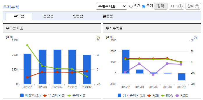 -2023년 9월 전년동기 대비 연결기준 매출액은 15.3% 감소, 영업손실은 152.7% 증가, 당기순이익은 6% 증가. 주력인 석유화학제품의 판가 하락으로 다소 부진한 매출을 기록함. P-X 및 프로판 등 주요 원재료의 상대적 하락폭이 작고 판관비 증가로 인해 수익성은 큰 폭으로 하락한 모습. 내수시장 거래처 확보 등 판매구조 다변화 및 중국 등의 해외 직판 장기계약 체결로 고정거래선 확보 노력 지속 중.