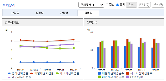 -2024년 3월 전년동기 대비 연결기준 매출액은 4.4% 증가, 영업이익은 477.7% 증가, 당기순이익은 218.8% 증가. 완성차 업계의 자동차 판매가 증가하고 판매단가의 인상의 영향으로 영업이익 크게 증가. 수출은 전년실적 호조에 따른 역기저효과에도 불구하고 미국, 유럽 등 주요 시장의 수요 정상화와 선진시장의 하반기 금리인하로 인한 소비심리회복 등으로 안정적인 실적 기대됨.