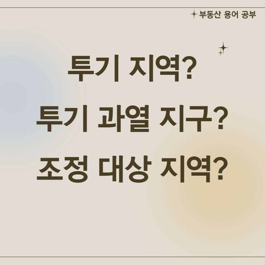 부동산 투기지역, 투기과열지구, 조정대상지역은 주택가격의 안정을 위하여 일부 지역을 규제하는 명칭으로 해당 지역에서 주택 거래시 금융 / 세제 / 전매제한 등 일반 지역과 달리 제약을 받는다.