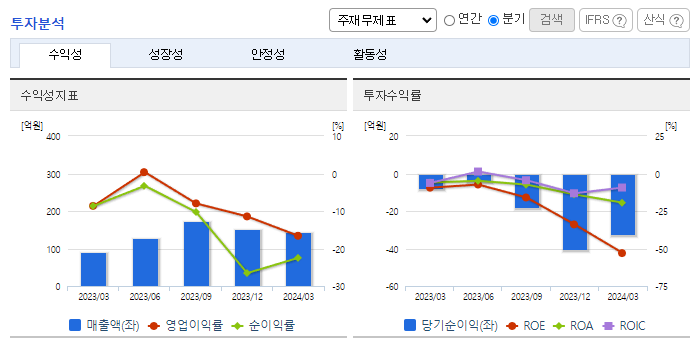 -2024년 3월 전년동기 대비 연결기준 매출액은 58.7% 증가, 영업손실은 205.4% 증가, 당기순손실은 390% 증가. 이차전지 산업 집중 전략 구사 등 본업 안정화가 외형성장에 도움을 주었고, 또한 신규 자회사 티라이트로보의 연결실적에 편입에 따른 외형 확장에 힘입어 호실적을 달성함. 세계적으로 2차 전지 투자가 늘어나면서 동사의 2차전지 스마트 공장에서 실적 개선이 기대됨.