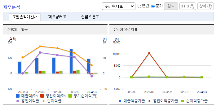 -2024년 3월 전년동기 대비 연결기준 매출액은 23.7% 증가, 영업손실은 1346.2% 증가, 당기순이익은 37.8% 감소. 지상파방송은 뛰어난 콘텐츠 제작 능력을 바탕으로, 기존의 광고수입 외에 콘텐츠 재활용을 통한 부가 수익창출에 주력하고 있음. 최근 내수경기의 침체 지속으로 광고경기 역시 부진한 모습을 보이고 있음. 종전의 플랫폼 중심에서 콘텐츠 부문으로 성장 동력이 이동하고 있어, 주도적인 위치를 유지할 것으로 전망됨.