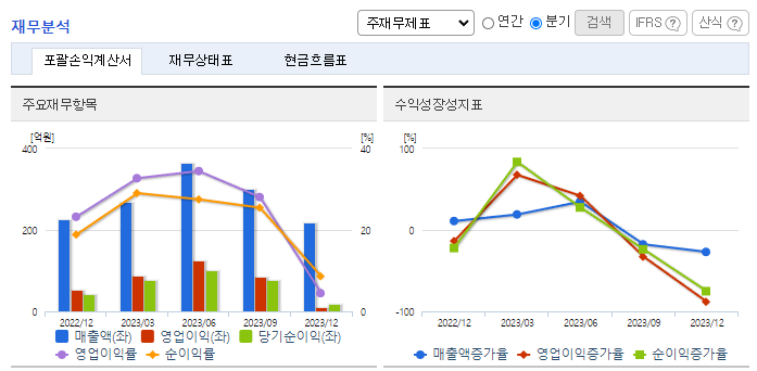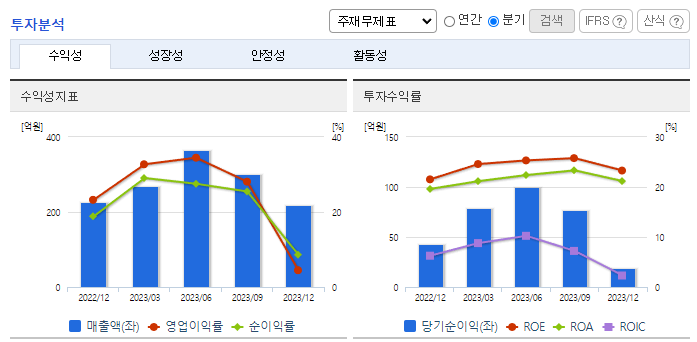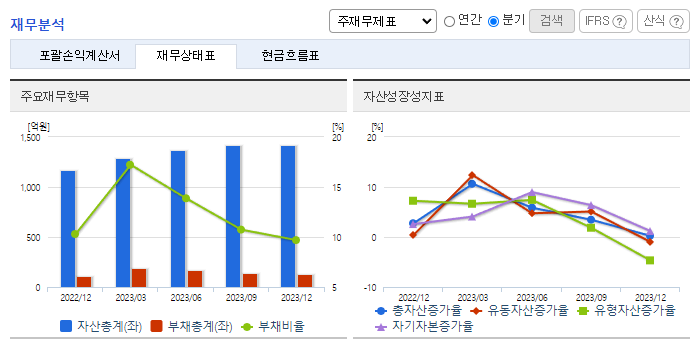 -2023년 9월 전년동기 대비 연결기준 매출액은 58.9% 증가, 영업이익은 56.9% 증가, 당기순이익은 51.7% 증가. 다양한 의료소재 개발 노하우를 바탕으로 더마코스메틱 시장 전개 가능하여 K- 뷰티 유행과 맞물려 동사의 매출액이 증가하였음. HPLC, UV-vis, FT-IR 등 각종 분석 설비 보유 및 해당 설비를 활용한 공인인증 시험기관 수준의 자체 시험 인프라를 확보하였음.