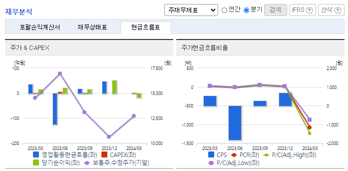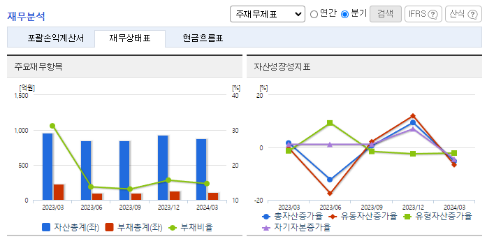 -2024년 3월 전년동기 대비 별도기준 매출액은 27.6% 감소, 영업이익 적자전환, 당기순이익 적자전환. 보안서비스 및 유지보수 사업 부문은 10.36% 증가했지만, 네트워크 장비 사업 부문이 43.67% 감소하면서 외형 성장에 악영향을 줌. 프로젝트성 매출을 제외한다면 기존 사업들은 지속적인 성장을 하고 있으며, 클라우드 인프라 최적화를 위한 시장 수요를 발굴할 예정임.