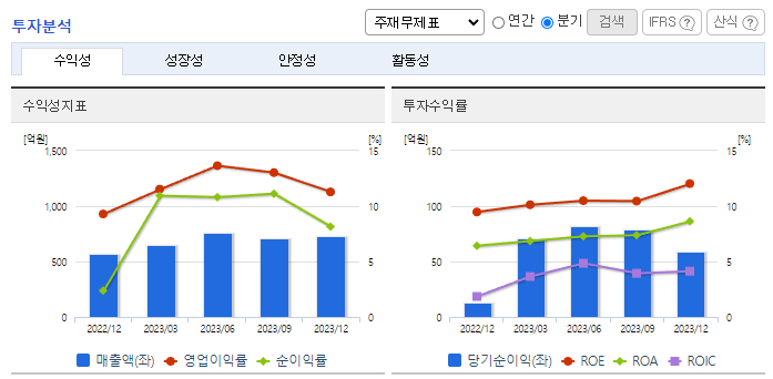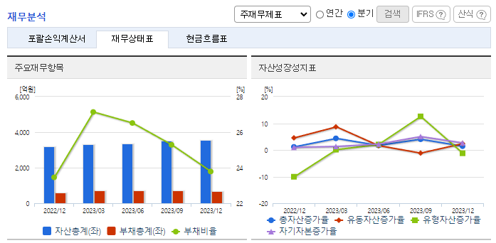 -2023년 12월 전년동기 대비 연결기준 매출액은 20.2% 증가, 영업이익은 33.3% 증가, 당기순이익은 41.1% 증가. 내수 및 해외 고객사 모두 매출액이 증가하였으며, 특히 스틱형 화장품 시장이 확장됨에 따라 당사의 스틱 용기 수주가 크게 증가하며 외형 성장함. 글로벌 ODM업체 KDC/ONE과 세일즈파트너십 계약 체결로 미주, 유럽권 지역의 로컬브랜드사에 동사 용기 공급을 확대 중임.