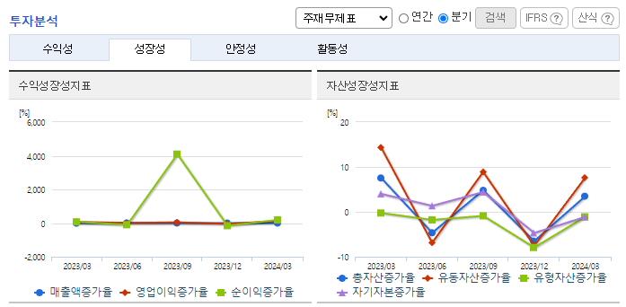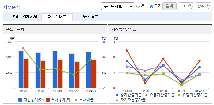 -2024년 3월 전년동기 대비 연결기준 매출액은 6% 증가, 영업이익은 88.6% 증가, 당기순이익은 71.5% 감소. 동사는 2024년 1분기 자동차부품의 제품 및 상품, 용역의 매출액이 모두 고르게 증가하였음. 평화기공 및 평화이엔지는 관계사로의 안정적인 판매처를 확보하고 있으며 평화오일씰공업은 고객의 Global 구매정책 확대와 국제 원자재 가격인상등으로 심화되고 있는 경쟁에 노력하고 있음.