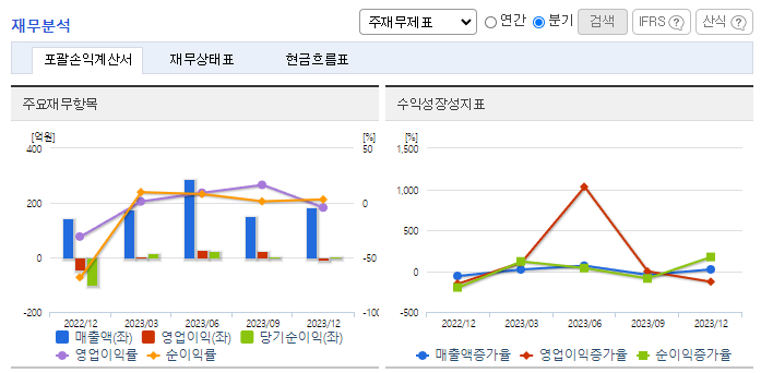 -2023년 12월 전년동기 대비 연결기준 매출액은 8.6% 감소, 영업이익은 1368% 증가, 당기순이익 흑자전환. 동사는 시장경기 둔화로 인한 매출액 감소가 있었으나 전기 재고자산 건전성과 일시적 손익효과(개발비 조기상각, 지급수수료 증가 등) 제거를 통한 손익이 개선됨. 5G 산업용 모바일 컴퓨터 ‘PM95’를 출시했으며, 산업 현장에서 디지털 트랜스포메이션을 촉진하며, 이를 통해 혁신적인 생산성 성장을 지원할 전망임.