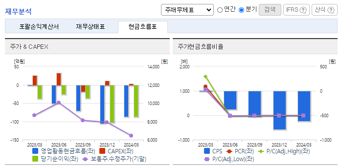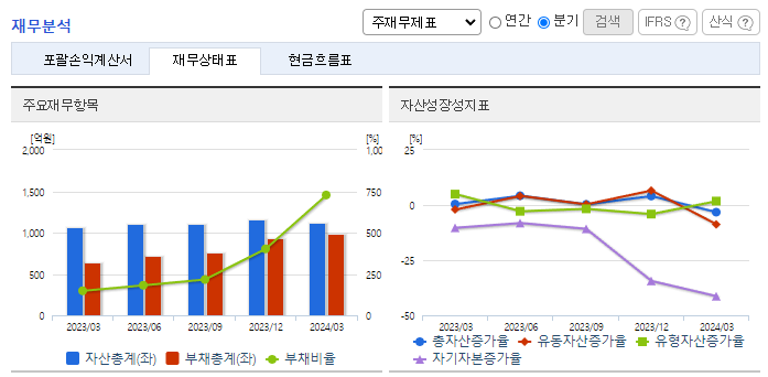 -2024년 3월 전년동기 대비 연결기준 매출액은 16.9% 감소, 영업손실은 149.1% 증가, 당기순손실은 133.7% 증가. 전 사업부문 감소세로 외형은 축소되었으며, 고정비 동반 감소에도 영업손실의 적자 폭은 크게 확대됨. 동사는 물류 전문 자회사 에프엔풀필먼트가 인공지능(AI) 기반 지능형 물류로봇 운영 플랫폼 기업 힐스로보틱스와 냉동창고 전용 스마트물류 로봇 기술개발 및 적용을 위한 물류로봇 연구개발 연구협약을 체결함.