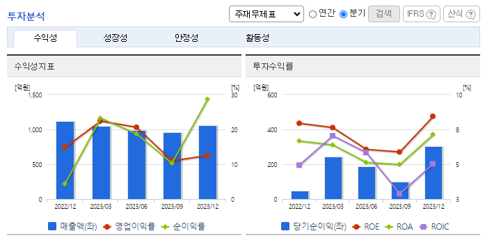 -전년 대비 2023년 연결기준 매출액은 4.9% 증가, 영업이익은 15.4% 감소, 당기순이익은 13.9% 증가. 영업수익의 증가에도 불구하고 관계기업 투자주식에 대한 지분법손익의 감소와 풍산특수금속의 이익 축소의 영향으로 영업이익이 감소함. 동사는 자회사들이 내부역량 강화로 리스크를 최소화해 경쟁력 있는 기업으로 거듭날 수 있도록 성장동력을 확고히 마련할 계획.