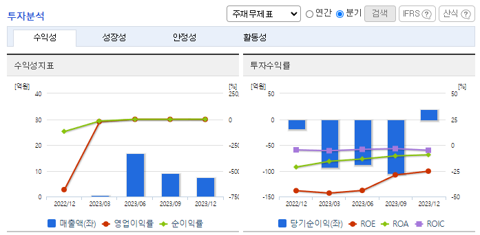 -2023년 12월 전년동기 대비 별도기준 매출액은 10306.3% 증가, 영업손실은 46.9% 감소, 당기순손실은 82.8% 감소. 4 공장을 보유하고 있으며 국내 3위의 생산 규모를 보유한 상황으로 적극적인 영업 활동을 통해 2023년 첫 흑자를 달성함. 글로벌제약사와의 기술이전 및 라이선스계약과 공급계약을 체결함으로써 향후 5~10년간의 장기계약으로 안정적인 사업환경을 갖추고 있음.