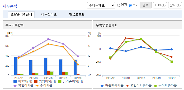 -2023년 9월 전년동기 대비 연결기준 매출액은 10.8% 감소, 영업이익은 40.5% 감소, 당기순이익은 29.8% 감소. 사업포트폴리오 확대 및 미래 성장 동인 확보를 위한 목적으로 ㈜라라잡 지분을 구주인수와 신주인수를 통하여 취득함. 영업조직 보강을 통한 사업영역 확대 등을 위한 목적으로 베트남 소재 APPLANCER JOINT STOCK COMPANY의 유상증자 참여를 2023년 7월 25일 자 이사회에서 결의함.