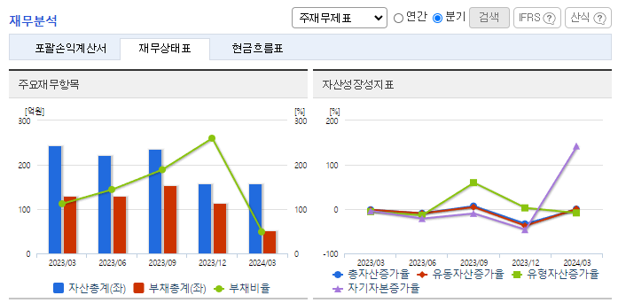-2024년 3월 전년동기 대비 연결기준 매출액은 11.7% 감소, 영업손실은 45.1% 감소, 당기순이익 흑자전환. 정부기관 및 기타 다양한 산업군의 수요는 꾸준히 증가하고 있으나 시장 경쟁 심화 및 환경 변화에 따라 매출이 하락하였음. 그러나 비용 절감으로 손실폭은 감소하였음. 플랫폼을 기반으로 하는 사업이므로 기능 개선과 더불어 데이터 관련 기술 추가 개발 등을 통해 동사 기술경쟁력 확보에 노력을 기울일 예정임.