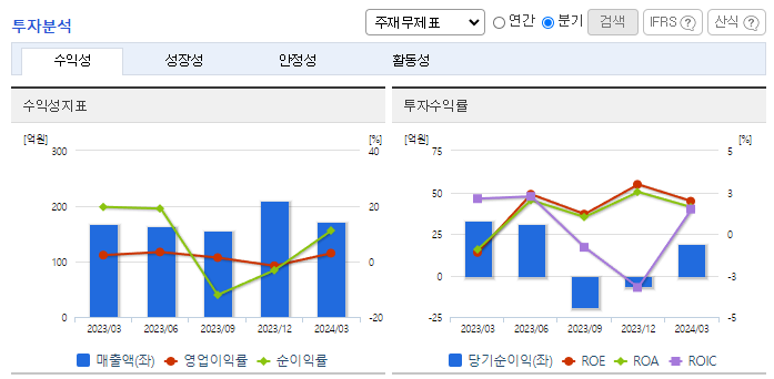 -2024년 3월 전년동기 대비 연결기준 매출액은 2.6% 증가, 영업이익은 33.3% 증가, 당기순이익은 41.8% 감소. 신재생 에너지 사업부문의 성장과 한국전력향 매출 증가로 전체 매출이 소폭 증가하였으며 매출원가 절감을 위한 노력으로 영업이익이 증가함. 친환경 개폐기 개발, 생산능력 확대 및 태양광 사업 밸류체인 확장 등을 추진하고 있으며, 주력 사업인 계량계측부문 외의 사업 성장을 위해 끊임없이 노력할 예정.
