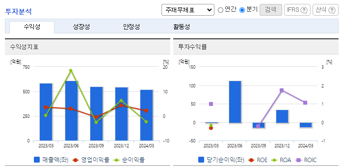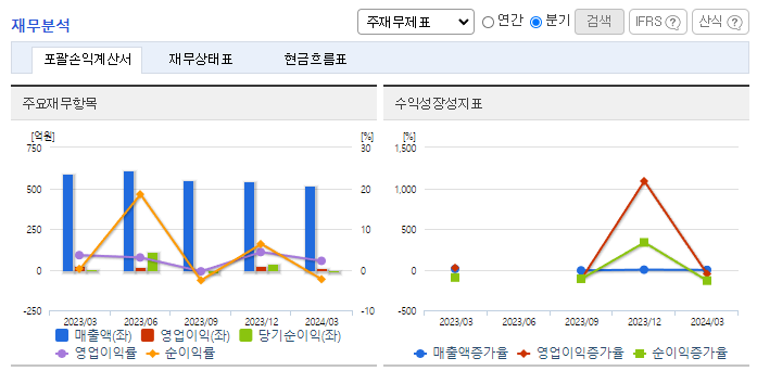 -2024년 3월 젼년동기대비 별도기준 매출액은 11.8% 감소, 영업이익은 22.4% 감소, 당기순이익 89.7% 감소. 알루미늄 원재료값은 미국 정부가 중국에는 376% '관세 폭탄'이 부과되었으나, 한국산 알루미늄 제품에 대해 2%대의 관세를 부과하기로 하면서 우려됐던 고율 관세를 피했음. 한국산 알루미늄 압출재에 대한 덤핑마진이 경쟁국에 비해 낮은 수준으로 산정됐고, 이를 통해 원가 절감이 가능할 것으로 예상됨.