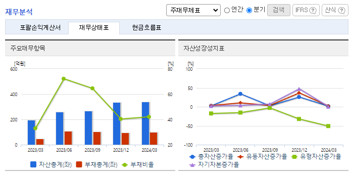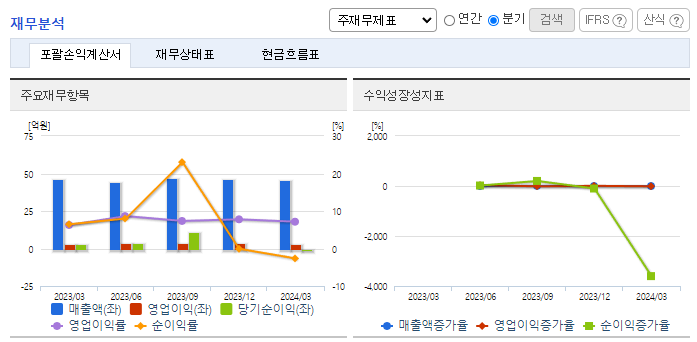 -2024년 3월 전년동기 대비 별도기준 매출액은 0.9% 감소, 영업이익은 12.8% 증가, 당기순이익 적자전환. 실시간 예산 관리와 광고 비딩으로 효율성을 높일 수 있는 CPC 위주의 광고와 웹툰의 특성상 직관적인 배너와 T&D를 사용할 수 있는 디스플레이 위주의 광고를 전략적으로 진행. 매출액은 전년동기 대비 소폭 감소했지만, 광고선전비와 지급수수료와 같은 판관비 절감 노력 실현으로 영업이익은 증가함.