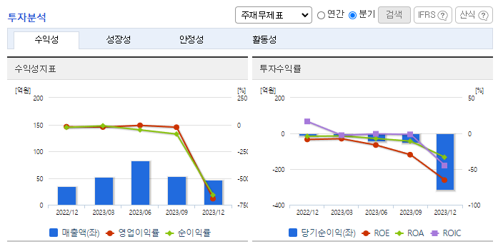 -2023년 9월 전년동기 대비 별도기준 매출액은 259.8% 증가, 영업손실은 29.8% 증가, 당기순손실은 273.6% 증가. 주력인 SEC 앵커 매출이 크게 늘었고 교량용 케이블 내수 매출이 신규 추가되며 전체 외형이 크게 성장함. 매출은 큰폭으로 상승했지만 원재료 가격 상승에 의해 영업손실 폭은 확대됨. 계절적으로는 정부의 SOC 예산집행의 특성상 3분기 이후에 매출이 집중되는 경향이 있음.