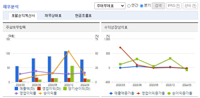 -2024년 3월 전년동기 대비 연결기준 매출액은 39.7% 증가, 영업이익은 58.9% 증가, 당기순이익은 323.1% 증가. 개인용 미용기기 해외 시장 매출 증가와 카트리지 등 소모품 매출 비중 확대에 따른 매출 원가율 개선 등의 영향으로 영업이익 개선함. 매출 비중을 보면 대한민국 44.2%, 유럽 14.2%, 중화(중국, 홍콩, 대만) 13.5%을 기록하였으며, 남미 시장의 매출 비중은 11.3%를 기록함.