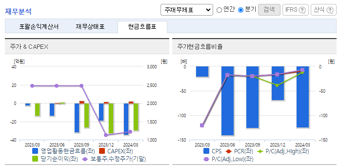 -2024년 3월 전년동기 대비 별도기준 매출액은 61.1% 증가, 영업손실은 65.7% 증가, 당기순손실은 105.2% 증가. 2024년 5월 케어닥과 AI 안전관리시스템 제품공급 계약을 체결했다고 공시하였음. 계약금액은 20억 원으로 이는 최근 매출 대비 36.33%에 해당하는 규모임. 중대재해처벌법 확대 시행으로 건설·산업 현장 등에서 안전 솔루션 수요가 늘어날 것으로 보이며, 전국 공사 현장을 대상으로 영업을 확대할 예정임.