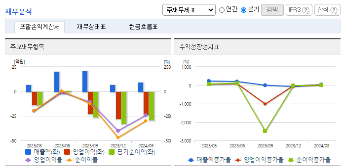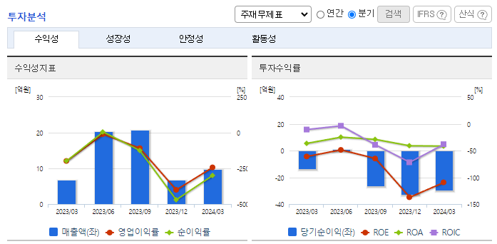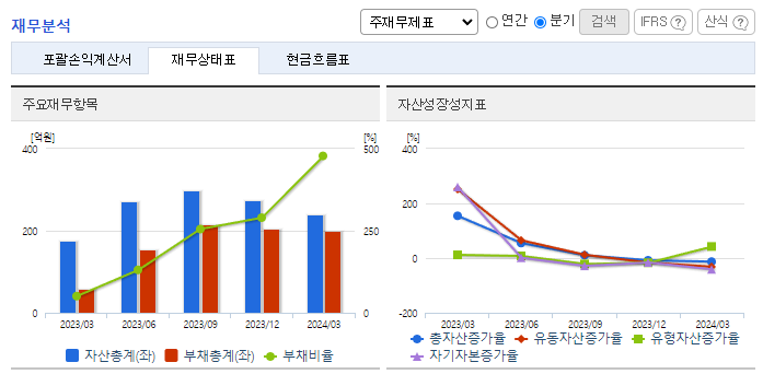 -2024년 3월 전년동기 대비 별도기준 매출액은 61.1% 증가, 영업손실은 65.7% 증가, 당기순손실은 105.2% 증가. 2024년 5월 케어닥과 AI 안전관리시스템 제품공급 계약을 체결했다고 공시하였음. 계약금액은 20억 원으로 이는 최근 매출 대비 36.33%에 해당하는 규모임. 중대재해처벌법 확대 시행으로 건설·산업 현장 등에서 안전 솔루션 수요가 늘어날 것으로 보이며, 전국 공사 현장을 대상으로 영업을 확대할 예정임.