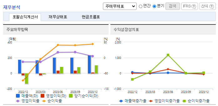 -2023년 9월 전년동기 대비 연결기준 매출액은 133.6% 증가, 영업이익 흑자전환, 당기순이익 흑자전환. 현재 기존 영위하고 있는 미용성형품목과 수술, 시술용의 의료기기 사업 외 화장품(더마코스메틱) 제품군을 출시, 확대 중임. 동사는 HA 가교기술에 관한 특허를 기반으로 HA필러, HA유착방지재 등을 자체 개발한 기술력을 보유하고 있으며, 보툴리눔톡신과 같은 전략적 신규제품을 개발하여 차세대 바이오 시장을 주도할 예정임.