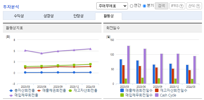 -2024년 3월 전년동기 대비 연결기준 매출액은 52% 증가, 영업이익은 286.6% 증가, 당기순이익은 252.4% 증가. 차량용 배터리 등 매출이 19.0% 증가하였으며 한국타이어앤테크놀로지 등 자회사에 대한 지분법 이익이 401.1% 증가함에 따라 전체 매출 및 수익성이 크게 증가함. 글로벌 프리미엄 성장 전략, 미국 테네시 공장의 안정화에 따른 수익성 개선 등 여러 긍정적 요인이 결합된 시너지 효과.