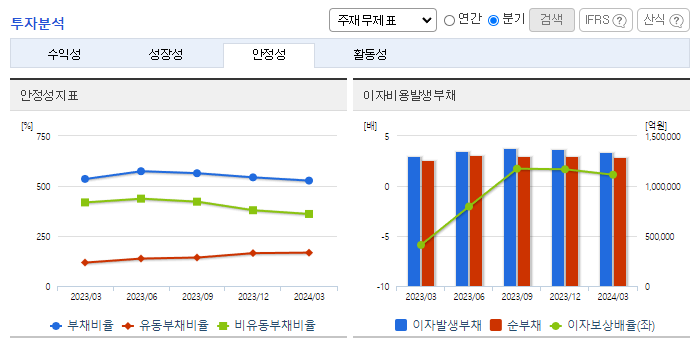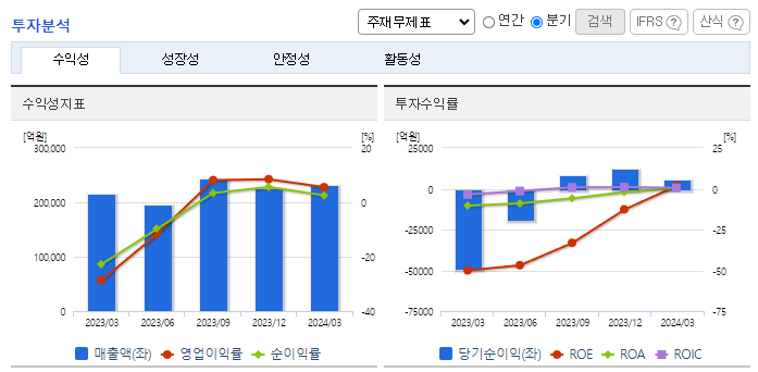 -2024년 3월 전년동기 대비 연결기준 매출액은 7.9% 증가, 영업이익 흑자전환, 당기순이익 흑자전환. 동사의 전체 매출액 중 약 98%를 차지하는 전기판매 사업부문의 매출이 전년동기 대비 증가하고 원재료 가격이 감소하면서 영업이익이 흑자전환됨. 미래에너지 시장을 선도하기 위해 2024년 1분기 약 462억 원을 투입하여 총 195건의 연구개발 과제를 수행하고 있음.