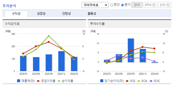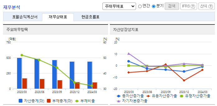 -2024년 3월 전년동기 대비 별도기준 매출액은 6.2% 감소, 영업이익은 76% 감소, 당기순이익 적자전환. 국내외 경기의 회복 시 대형 설비투자에 따른 중, 대형주강품의 수요가 지속적으로 증가할 것이며, 동사의 매출 및 수익률 증대가 예상됨. 품질관리, 원가절감을 통한 경쟁력 우위 확보, 해외시장 개척을 통한 수출 증대, 신제품 개발을 통한 신규시장 개척, 적기공급 및 최단거리 출하로 물류비용 절감 극대화를 목표로 하고 있음.