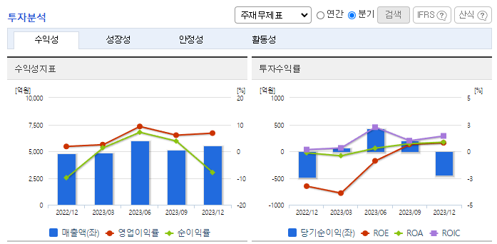 -2023년 9월 전년동기 대비 연결기준 매출액은 15.7% 증가, 영업이익은 52.8% 증가, 당기순이익은 103.2% 증가. 8월에 ERP시스템 교체로 인한 가동률 하락과 관련 감가상각비 반영, 성과급 30억 충당금 반영 등으로 컨센서스를 하회. 지난 10월, 비효율적 지배구조를 개선해 주주가치를 제고하기 위해 자회사 연우를 완전 자회사로 편입하는 ‘포괄적 주식교환’을 진행한다고 밝힘.